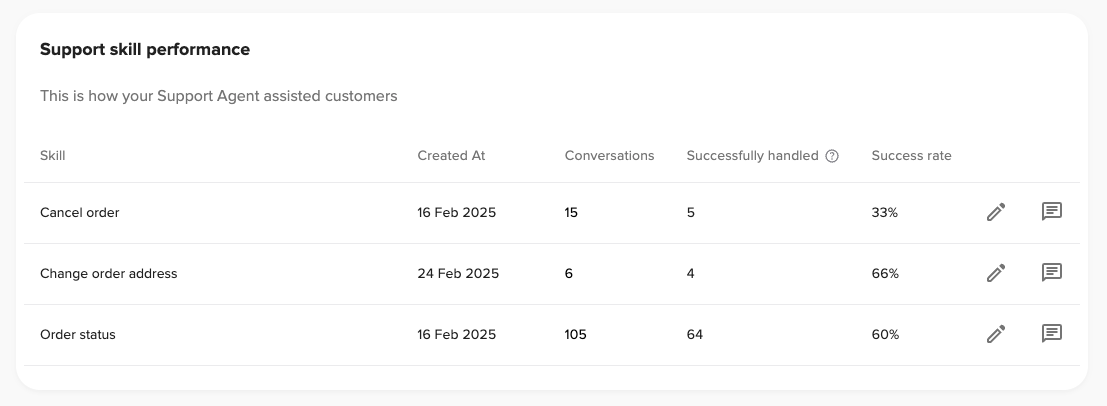 Success Rate: Percentage of conversations where this support skill led to successful resolution