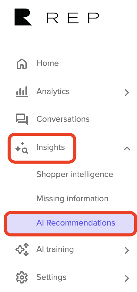 - In the left-hand menu, navigate to Insights > AI Recommendations.