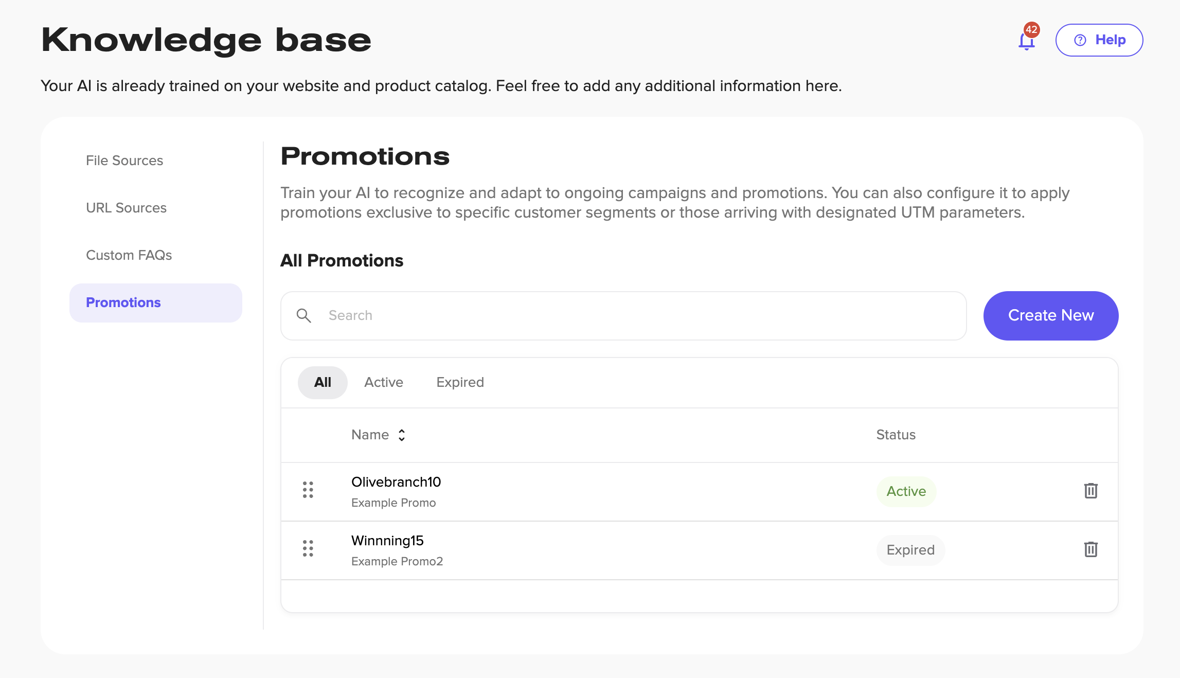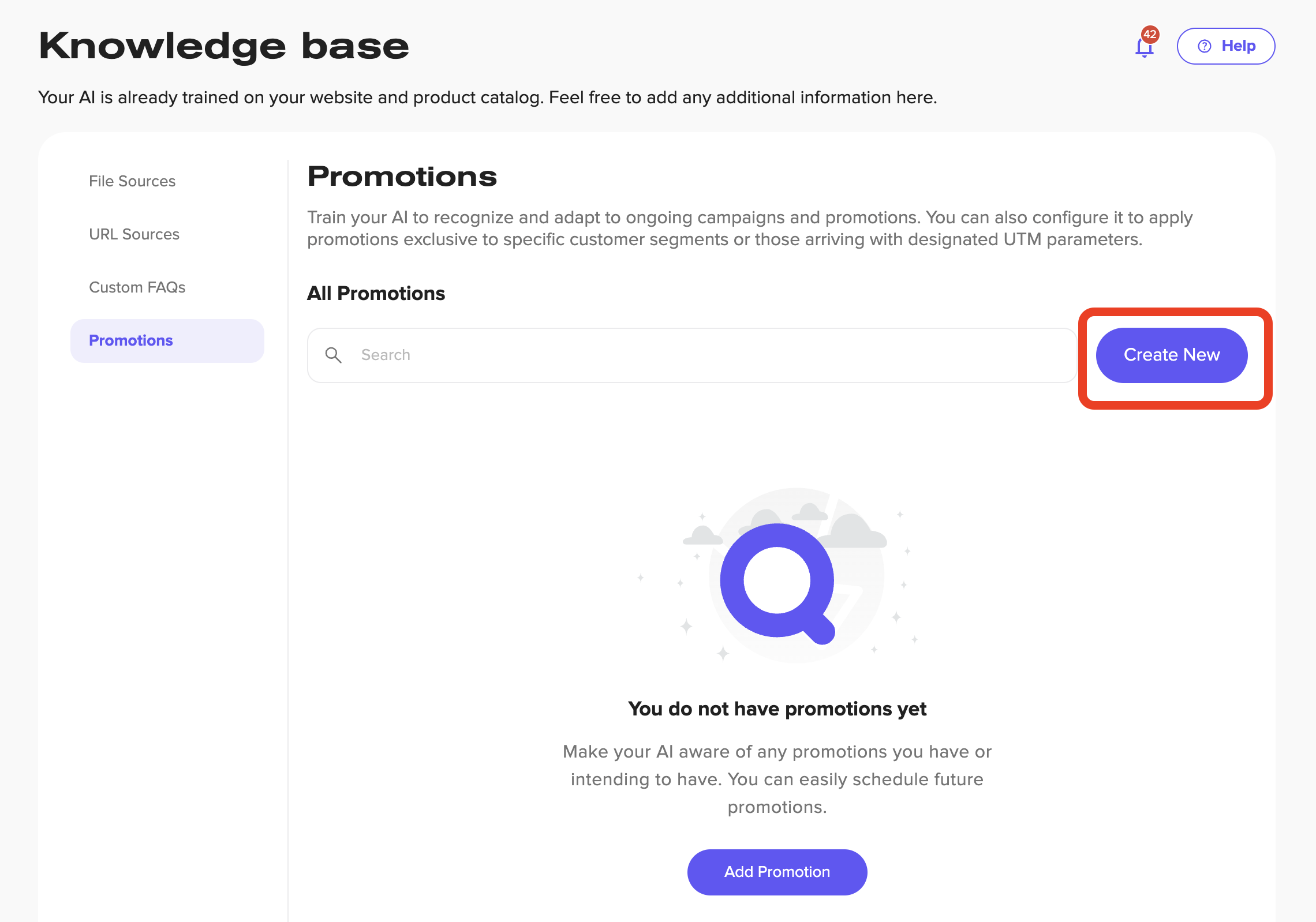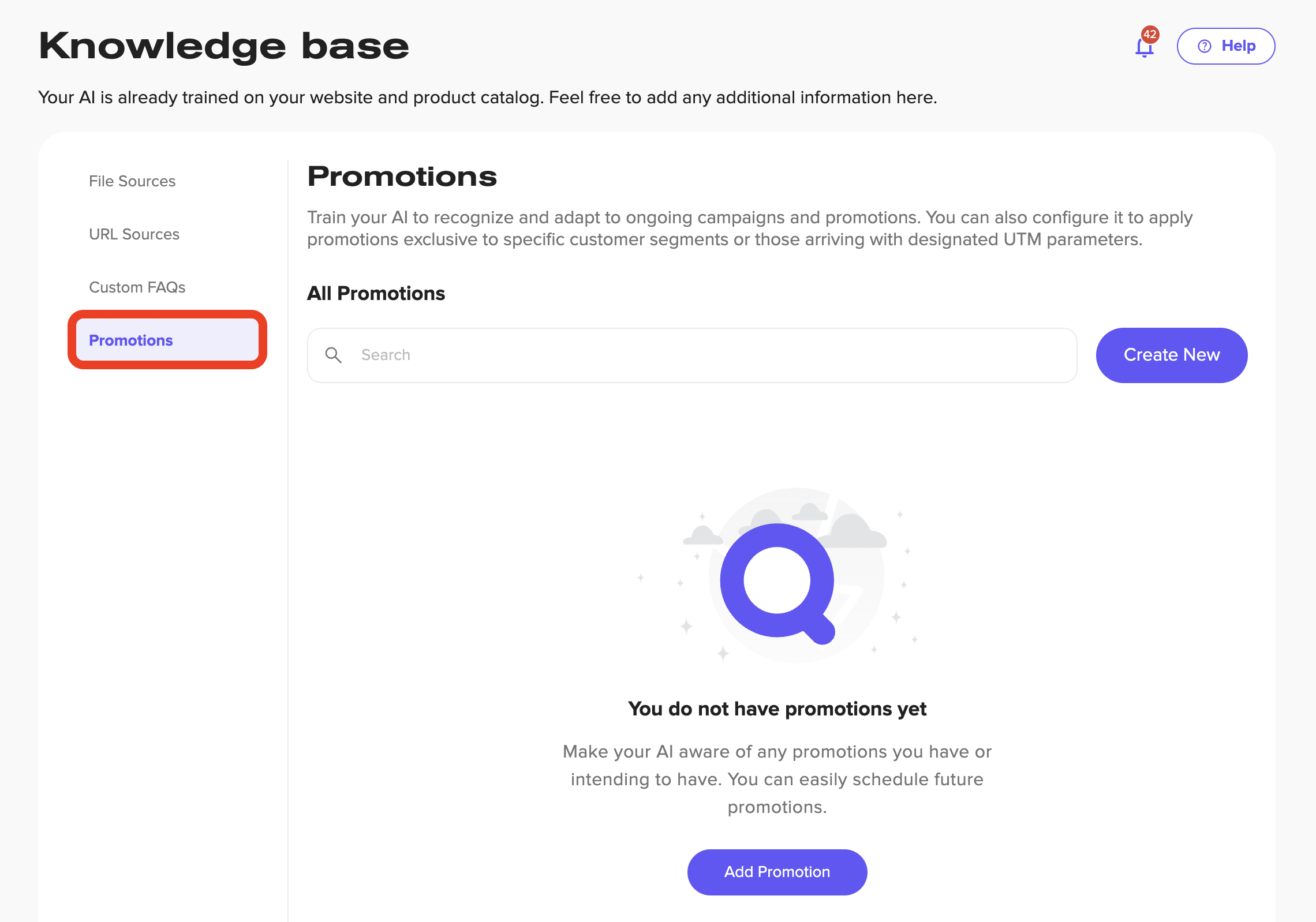 The Promotions feature empowers you to train the AI to recognize and adapt to ongoing campaigns and promotions.