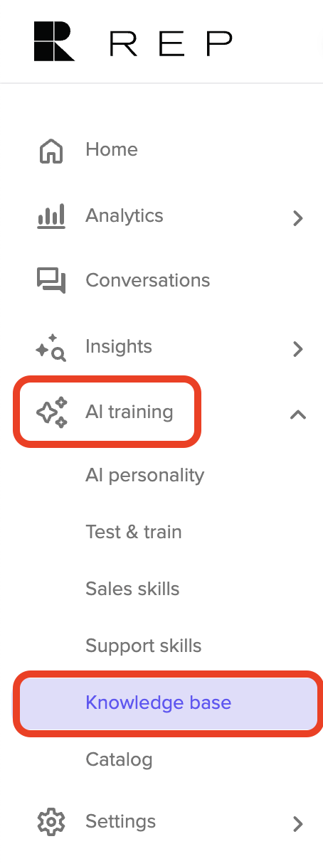 - In the left-hand menu, navigate to AI Training > Knowledge Base.