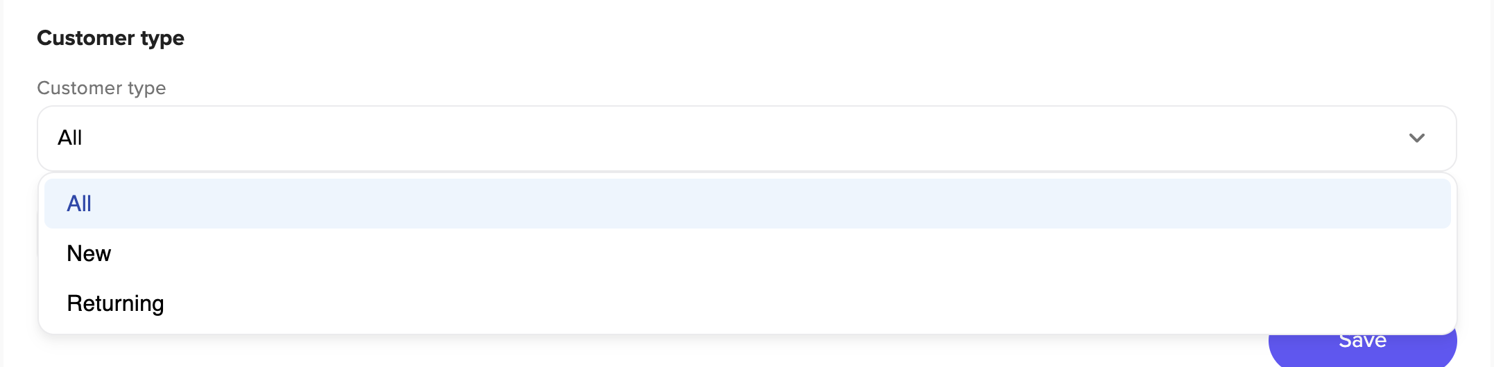 In the Customer Type dropdown, specify whether the promotion should apply to: